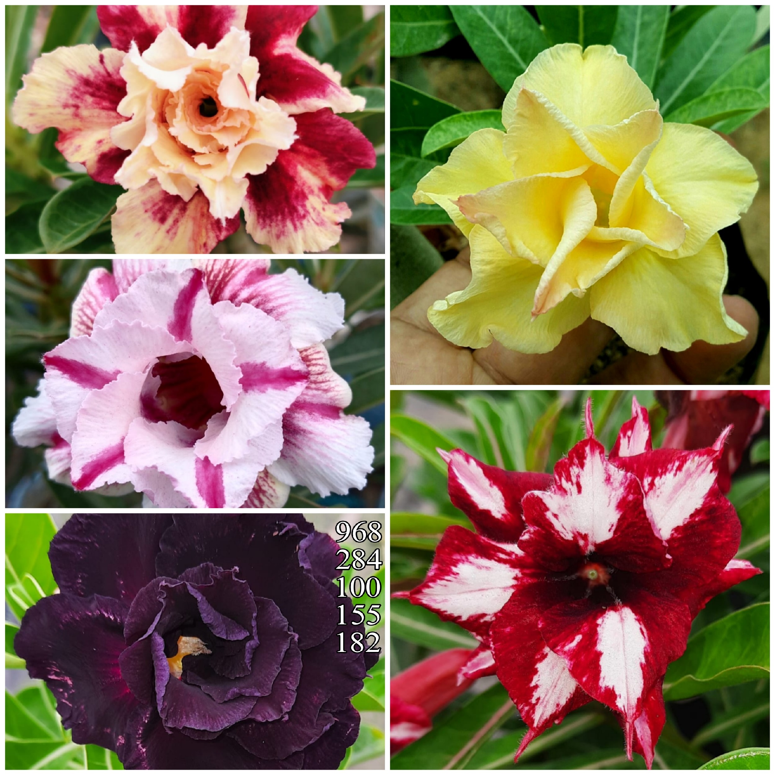 This combo comprises of 5 different varaints of Grafted Adeniums: